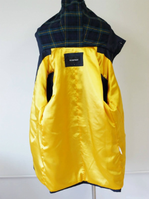 防寒性を高める為にフード裏にブラックウォッチのフランネルチェックを使用!! 裏地は目を引くマスタードイエローも特徴です!!