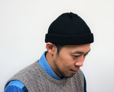浅めに設計されたリブ編みのコットンベースのロールアップビーニーです!!