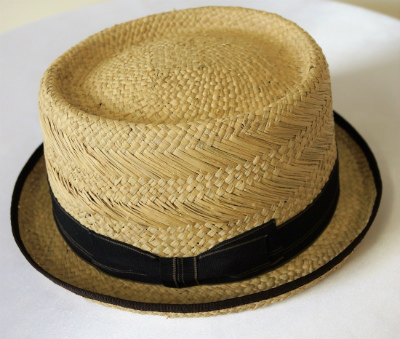 パナマ草をコーヒー染し手編みで仕上げたポークパイハットです♪