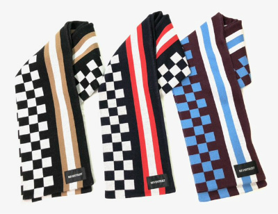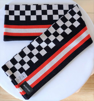 チェッカーとストライプを合わせた斬新でインパクトのあるコンビマフラーです!!
