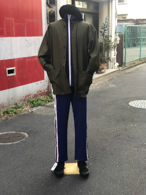 AUDIENCE(オーディエンス) グリストーンWギャバガーデニングコートはミリタリーコートのように使えるので、このトラックスーツとの相性も抜群です!!