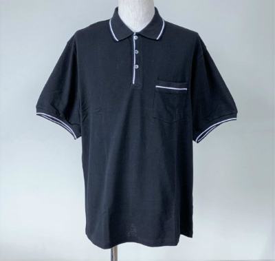 NEVERTRUST(ネバートラスト) ポケット付きライン入りポロシャツ ブラック