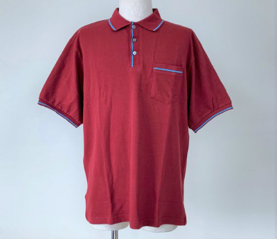 NEVERTRUST(ネバートラスト) ポケット付きライン入りポロシャツ バーガンディー