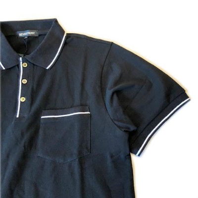 NEVERTRUST(ネバートラスト) ポケット付きライン入りポロシャツ ネイビー