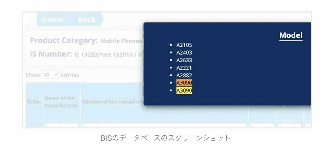MySmartPriceによると、「A3090」というモデルナンバーのApple製スマートフォンがインド規格局(BIS)の認証を取得したことが分かりました。