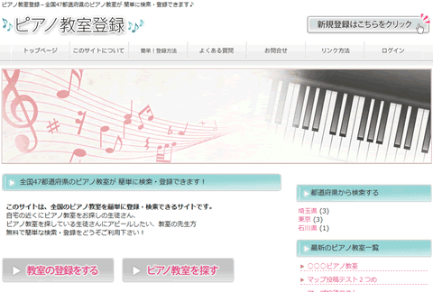 ピアノ教室を無料で宣伝できる登録サイトです。