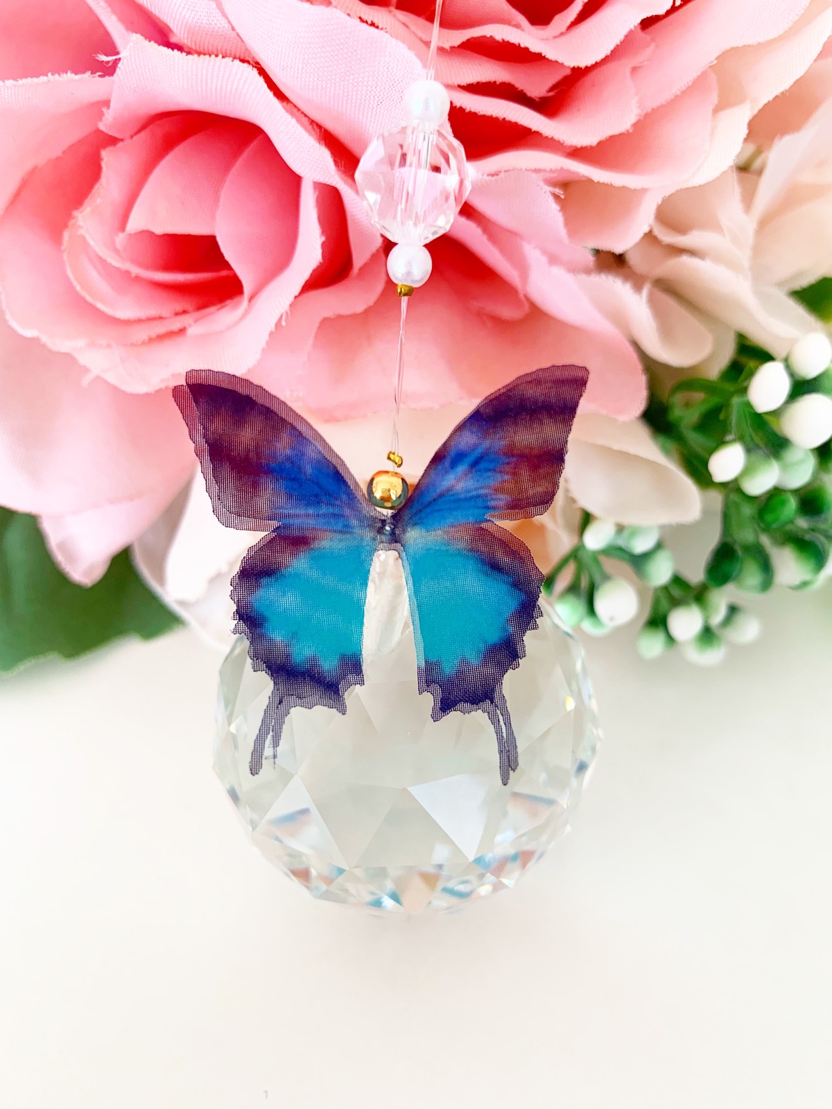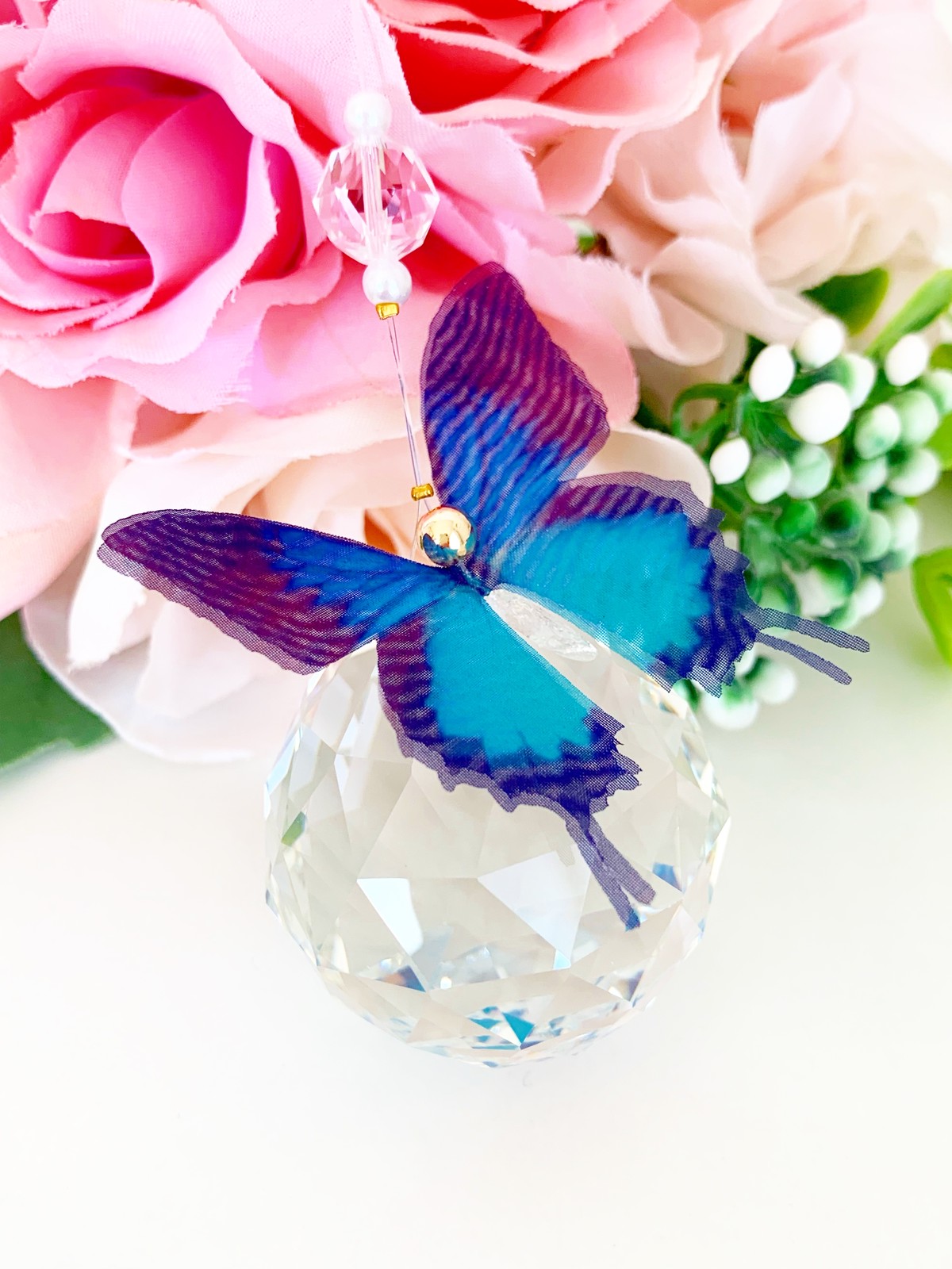 青い蝶のサンキャッチャーの紹介です。