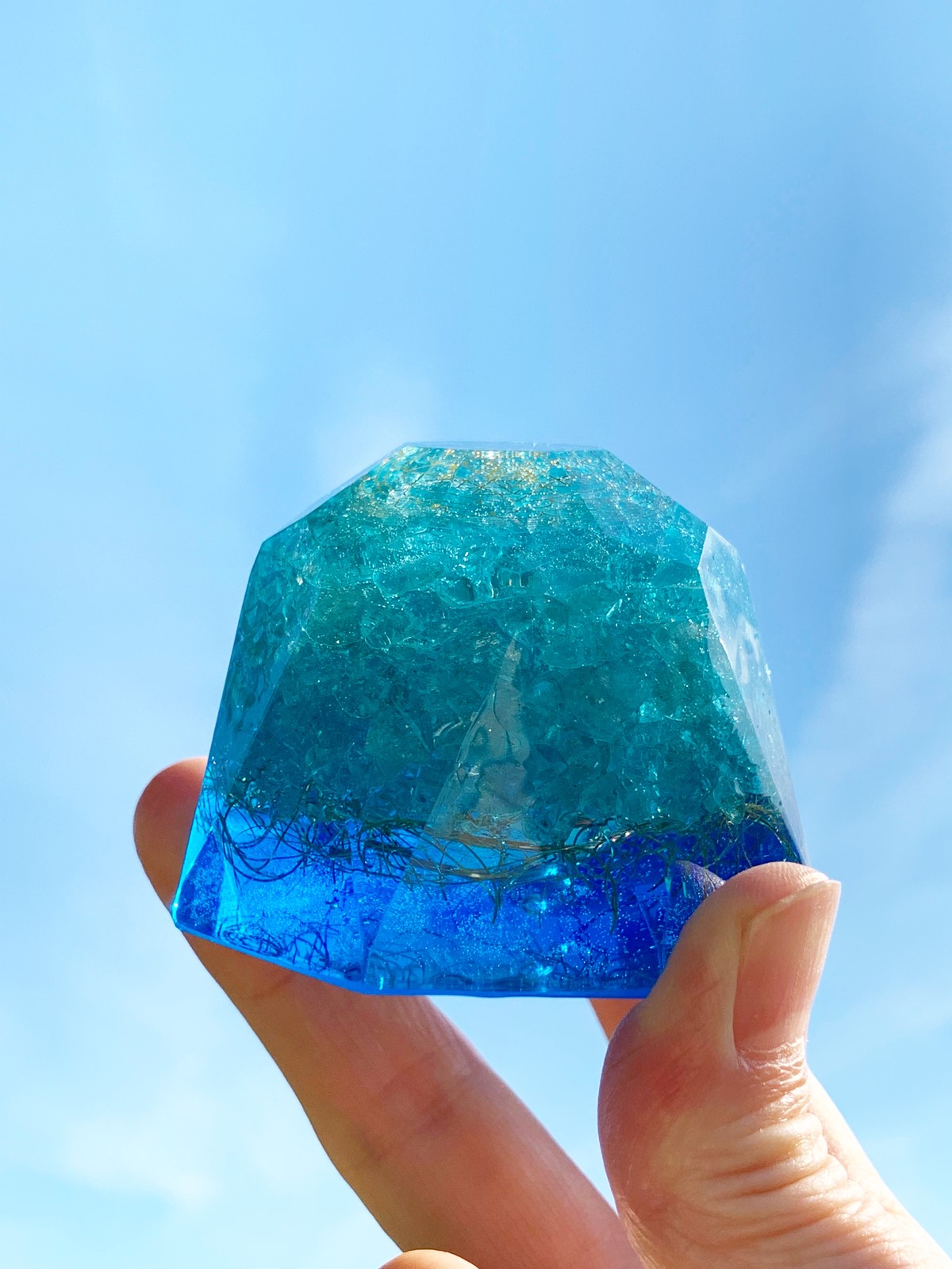 オルゴナイトの下部にブルーを薄く着色してお入れしました。