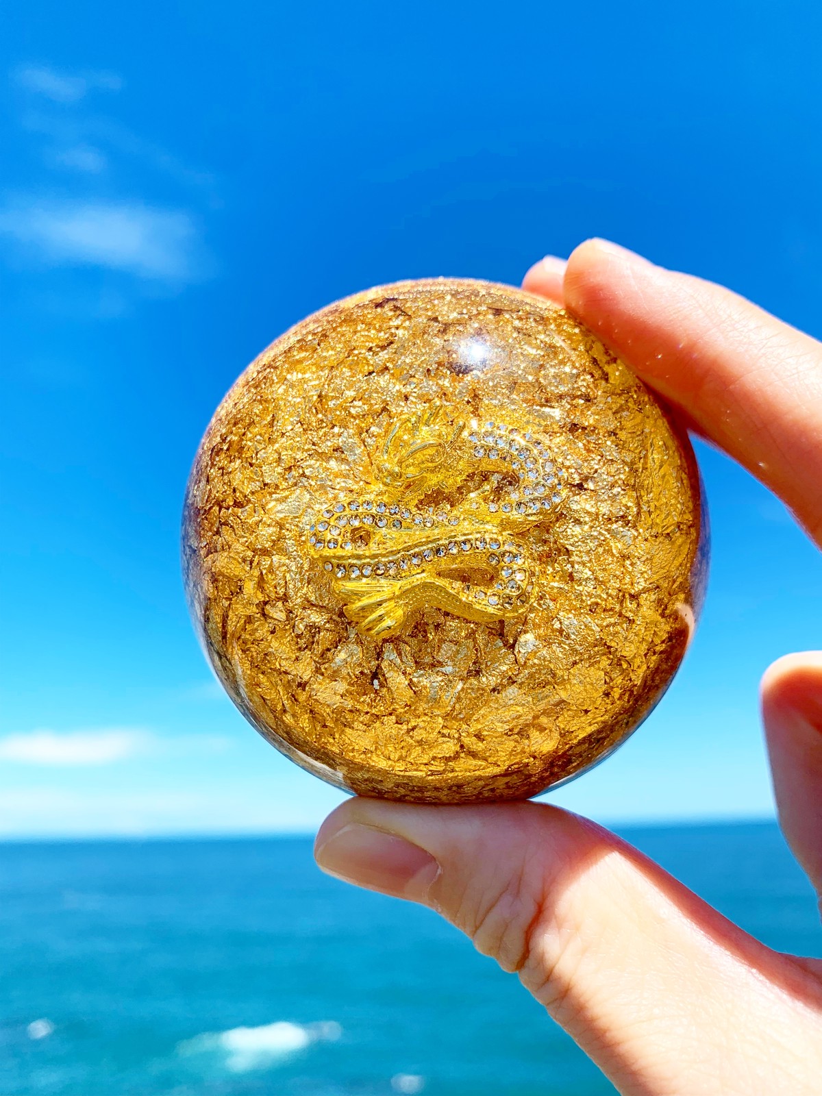 キラキラとラインストーンが光る金龍ちゃんです。