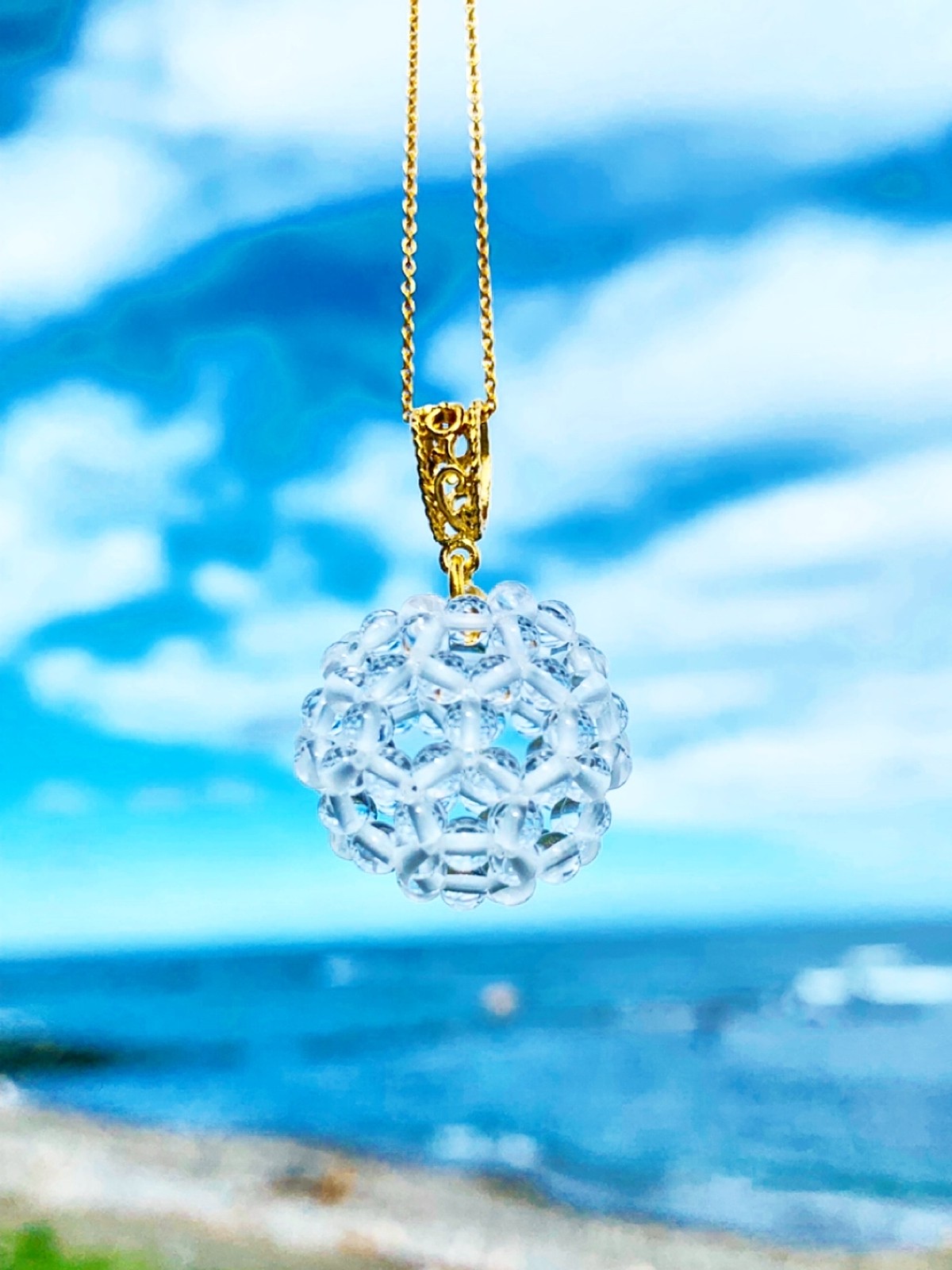 フラーレンの形である神聖幾何学、正五角形と正六角形が組み合わさった32面体で、「レオナルド・ダ・ヴィンチ」が追求した「完全なる多面体」であり、最強のパワーが宿る究極の図形と言われています。