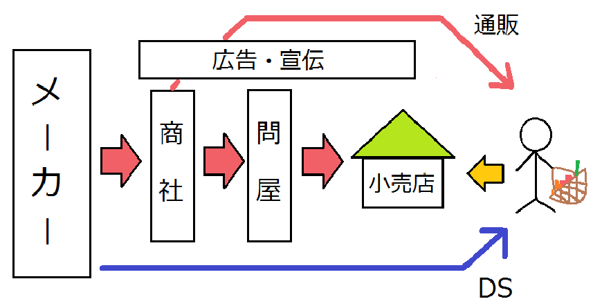 まずメーカーは作った製品をCM(広告)で宣伝します。