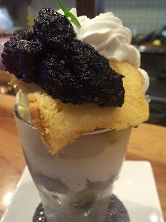 婚活ミィーティング終了後、お気に入りのカフェ、滋賀県守山市の忍ぶ庵さんで「黒ごまパフェ」を頂きました。