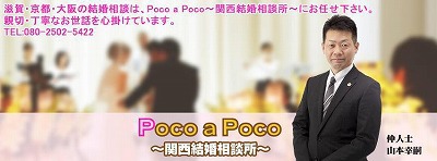 滋賀を中心に男性の婚活を応援しております「Poco a Poco~関西結婚相談所」です。