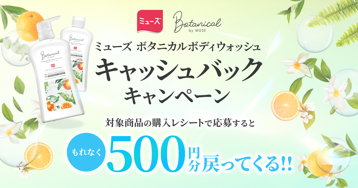 ミューズ ボタニカルボディウォッシュ キャッシュバックキャンペーンミューズボタニカルボディウォッシュデオドラントクリアモイスト本体もしくはつけかえ購入で500円分キャッシュバックwww.musebodywash-cashback2025.jp