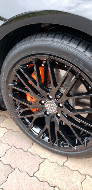 グロスブラックなホイールから覗くオレンジのキャリパーカバーがカッコいいです(^^)