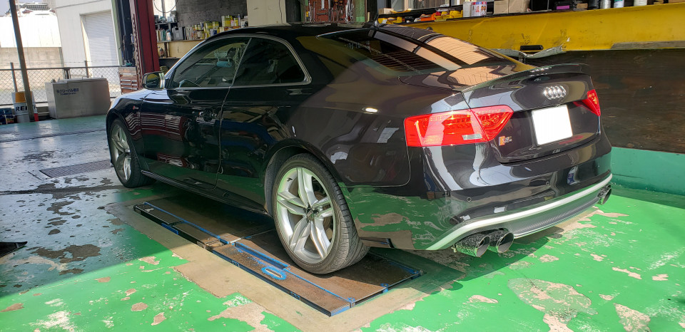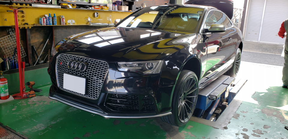 アウディ S5、タイヤ&ホイール交換でご来店です。