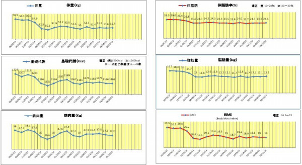 基礎代謝を測定できる体組成計で毎回図って頂いているデータがあるのですが