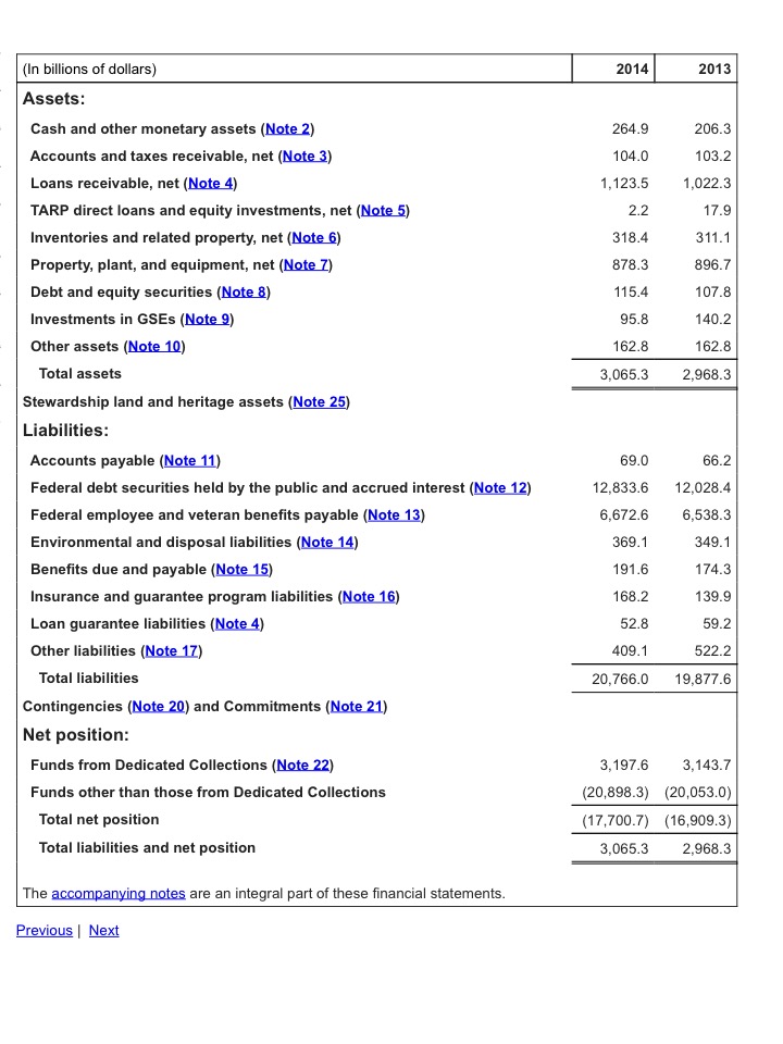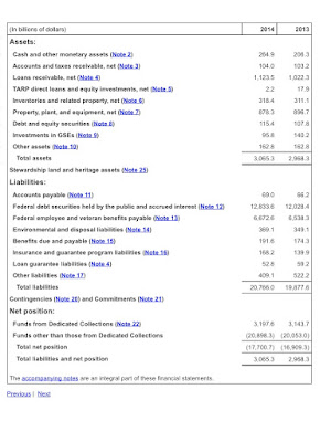 上記のBS表では、資産と負債の差額が、17兆ドルであり、資産の6倍近い。その中で、国債(Federal debt securities)は12.8兆ドル位であり、またその下にある6.6兆ドルあまりは、職員の退職引当金などであろうが、相当多額である。日本と違って軍人が160万人近くいるので、その年金引当金などが大きいのだろう。国家の純粋な借金としては、上記17兆ドルと考えて良いだろう。