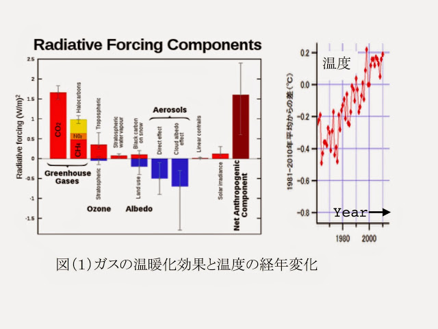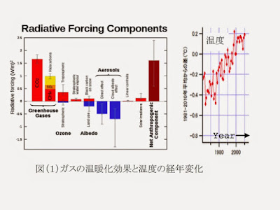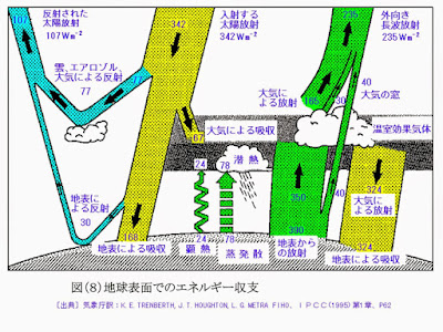 http://rcbyspinmanipulation.blogspot.jp/2014/01/blog-post_23.html そして、今回、IPCCの考え方を真面目に考えてみた。その結果、図(8)にあるような多くのプロセスで地球の温度が決定され、そのプロセス一つ一つに、大気圏物理学や地球物理学という分野で、気候を含め様々な問題を研究している方々の膨大な研究があることを知った。その中に首を少し突っ込んだだけで、二酸化炭素などによる地球温暖化の進行という問題には、簡単には結論がでないことが解った。理解が進んで、難しさが解ったのである。 一点だけ簡単なことだが最も大切な点が気になった。IPCCは、温度測定ポイント近傍の都市化による温度上昇分を、地球全体の温度を見積もる際に、差し引いているかどうかである。その点について明確にすべきであるとおもう。