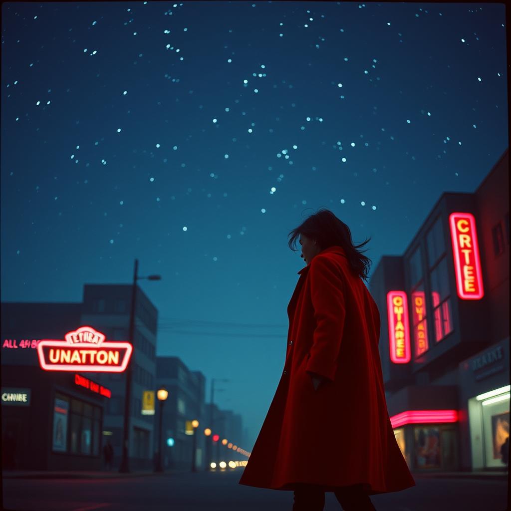 夜空に輝く星たち 君と見上げたあの日 今は一人で眺めてる 孤独な影が近寄って **コーラス:** 赤いコートの女 街角で立ち止まり見上げてる ラブレターが風に舞う 届かぬ想いが胸を締め付ける **2番:** 夕暮れの光が揺れて 君の影を探し続ける 手紙の文字が滲んで 涙の跡が消えない **コーラス:** 赤いコートは風に舞い 思い出の中で微笑む でも心は空っぽで 君の声が聞こえない **ブリッジ:** 赤いコート、夢の中の君 時が止まったまま、ただ待つ 風が運ぶ、懐かしい声 私の心に響いている **コーラス:** 赤いコートの女 街角で立ち止まり見上げてる ラブレターが風に舞う 届かぬ想いが胸を締め付ける **アウトロ:** 夜空に輝く星たち 君と見上げたあの日の夢 赤いコートが静かに舞い 思い出に消えていく…