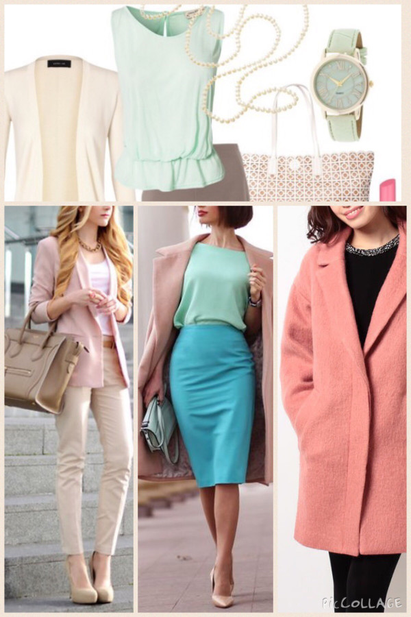 最初にキャラクターとご職業からイメージしたコラージュ。トレンドのペンシルスカートは絶対お似合いだと確信。(笑)