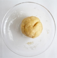 水を少しずつ加えて生地をまとめ、15分ほど捏ねた後、ラップをして30分ほど寝かせます。