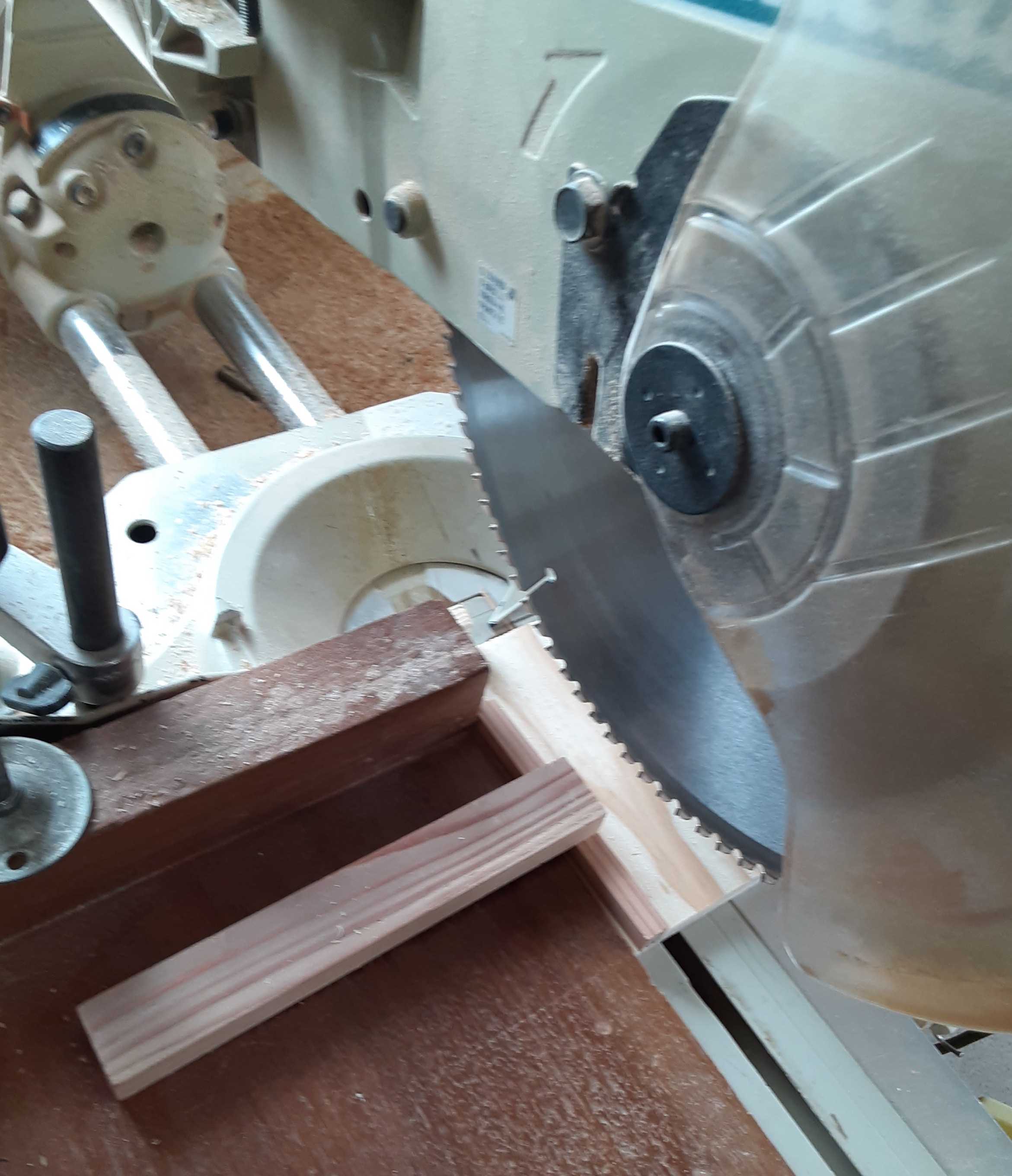 今日は丸ノコで2.5cmの幅に材料を切っていく作業をしていました。