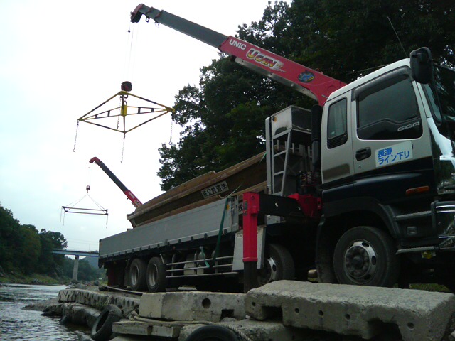 下流まで行くと、こんな重機を使って舟を上流まで運ぶそうです。