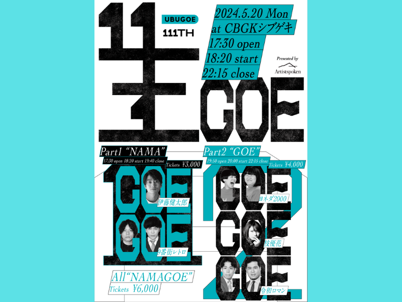 Artistspoken presents「UBUGOE」放送111回突破記念公開収録&トークライブ【NAMAGOE】