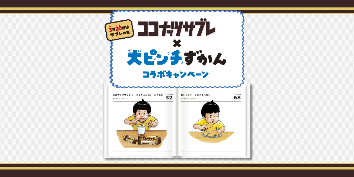 ココナッツサブレ|ココナッツサブレ×大ピンチずかんコラボキャンペーン|日清シスコ大ピンチずかんのオリジナルイラスト入りコップ&コースターセットを抽選で320名様にプレゼント!ココナッツサブレの購入レシートで簡単応募!www.coconut-sable.jp