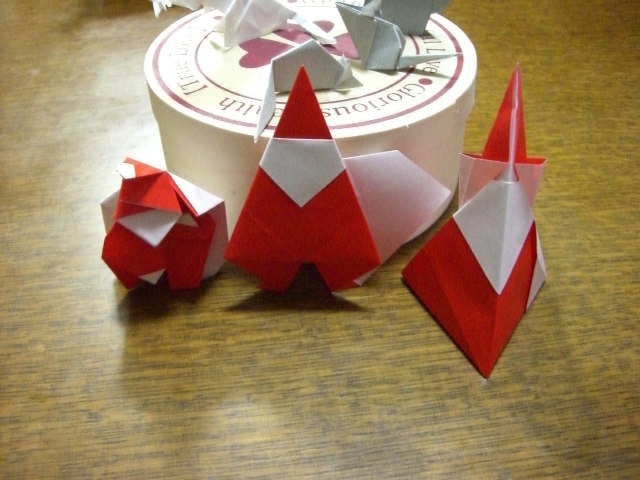 2回折りのサンタと芦村さんのサンタと坪さんの複合サンタなどが