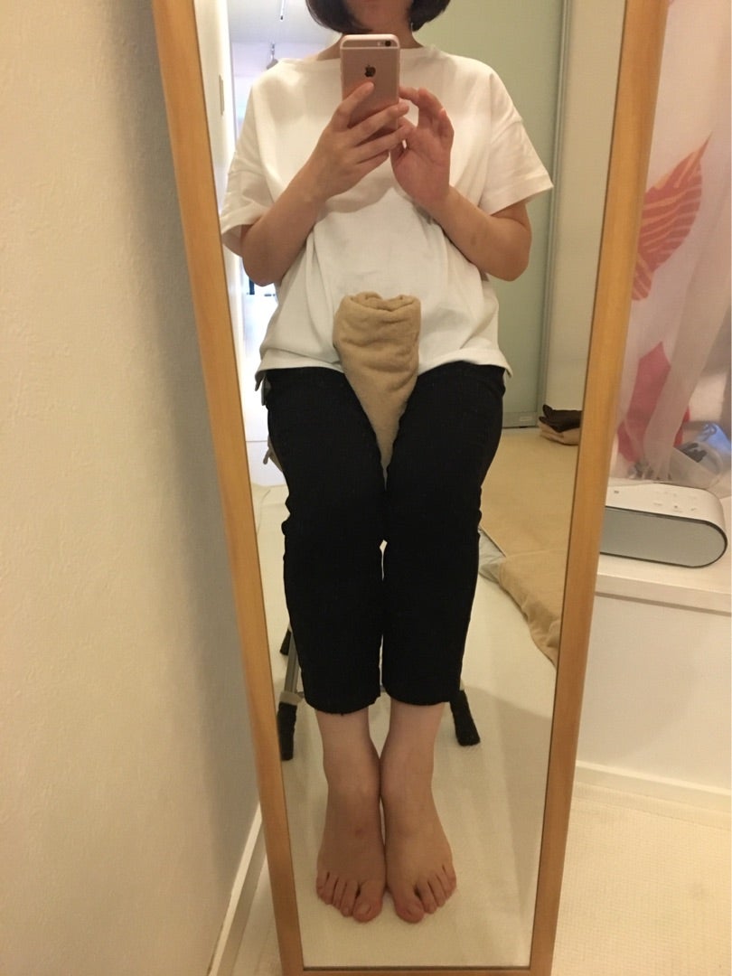 バスタオルを丸めて、股に挟みます。