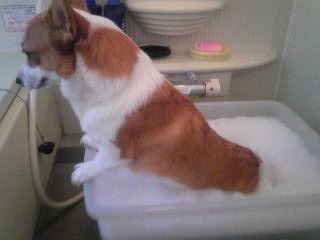 でも、お手手を踏ん張って、どうしても中には入りたくないって感じです![]()