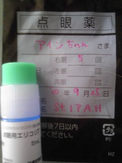 もらった目薬をさしてたら、少しは目やにの量も減ってきたような~