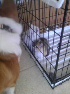 コギちゃんがいることは滅多にないんだけど、今日は3ヶ月の男の子がスヤスヤしてました