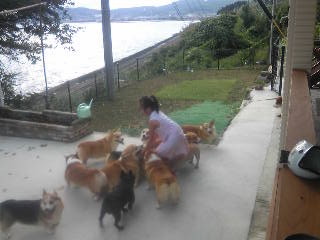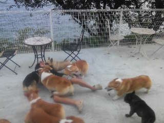 カフェ&レストランもあり、お茶をしながらコギさんたちとたわむれ・・・![]()