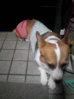 アインはパンツがよほどイヤみたいで、玄関にこっそり行って勝手に脱いじゃってます![]()