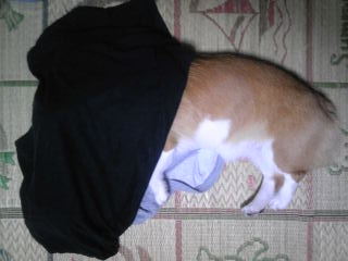 写真のアインは、寝てるところにパパのTシャツをかけたら・・・、はずすこともなくそのまま寝ちゃってます