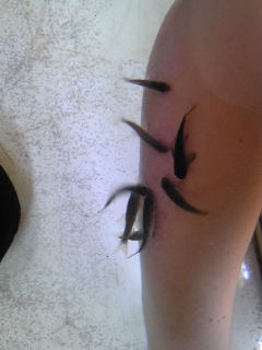 写真じゃちょっとよく分からないかもしれないけど、乾癬の部分にお魚さんが集まっています![]()