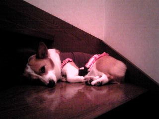 写真は、階段をのぼってきた私に寝てるところを起こされて不機嫌そうなアインです