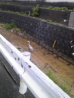 今日買い物の帰り、うちのすぐ近くの川沿いを車で帰ってきてたら、川にすごいでっかい鳥が飛んできた![]()