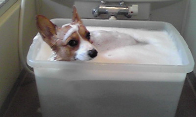 夕方になっちゃったけど、アインをお風呂に入れました![]()