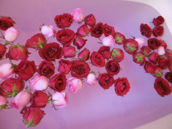 気分転換に、自宅に戻りましたら、薔薇風呂を楽しみましたわ