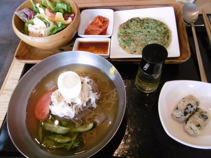 私は冷麺セットを、娘はサムゲタンセットとオレンジジュースをオーダー