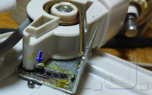 本来なら、バネがイイ感じに縮んで、金属部分の穴をベアリングが程良い圧力でコロコロ移動する仕組みなのね。