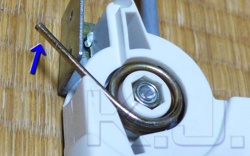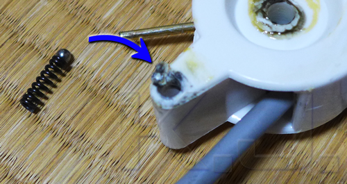 欠けた穴ん所を見ると、ホントだ黒いバネがあるよ。