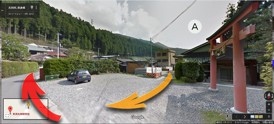 - 「天の川温泉」の看板があるT字路(地点A)を左へ [ストリートビュー]