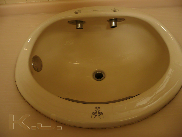 洗面台から温風が出るし、何と鏡が前ではなく横にあるのだヒェーーーッ!