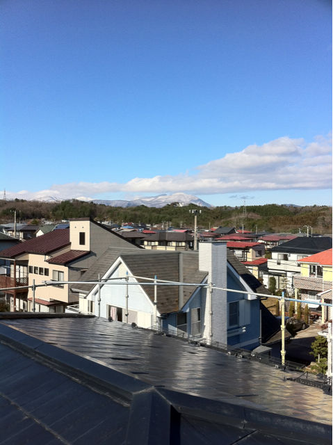 仙台快晴雪化粧の泉ケ岳を望む工事中のお客様宅の屋根の上からとった一枚。空気が澄んでて爽やかな朝です。今年もあと僅か、営業も工事も皆、年内完工目指して慌しく動いております。天候に大きく左右される私達の仕事。晴れの日が続く事は大変有難い事です。さ、今日も一日頑張って行きましょうー‼