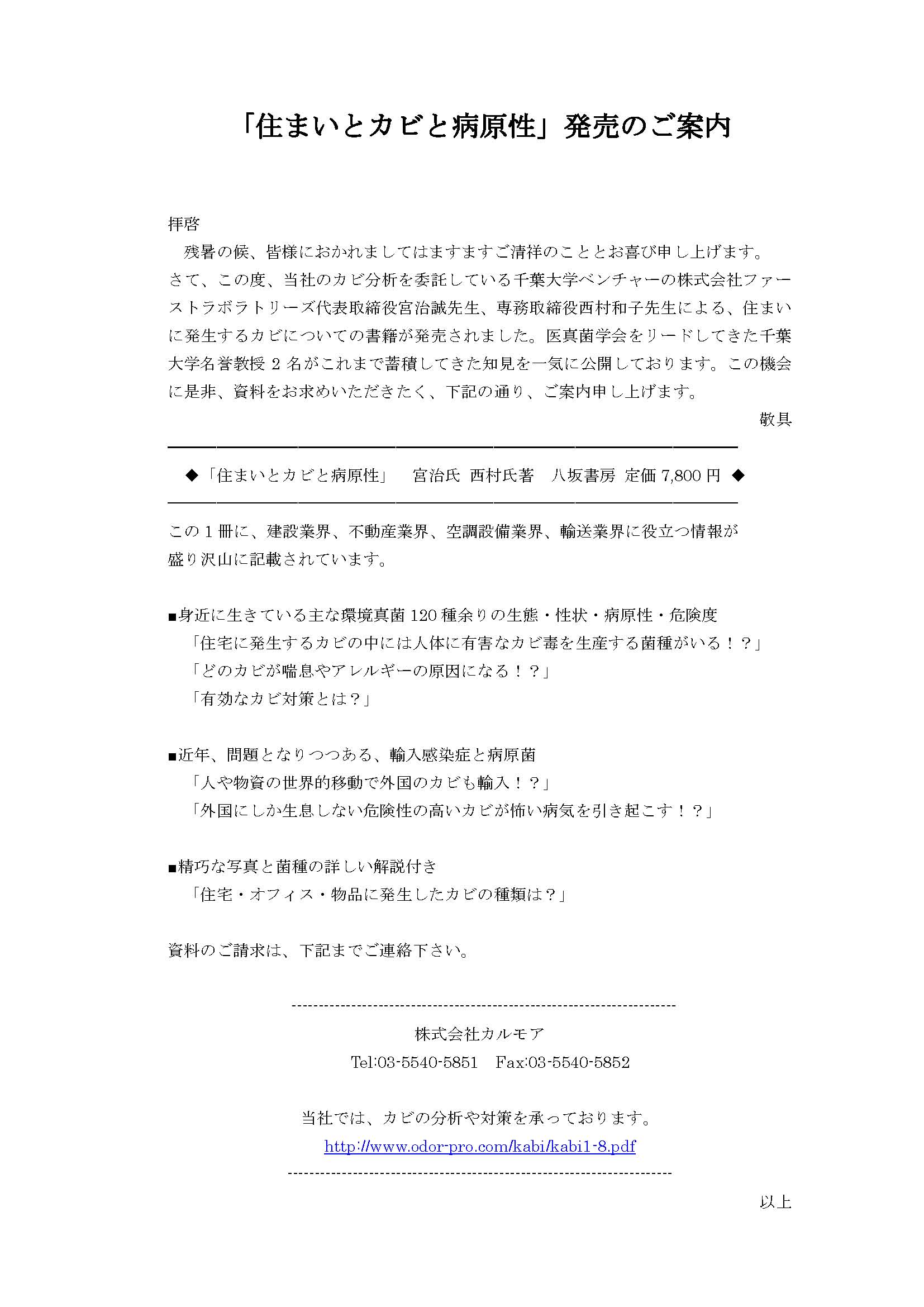 弊社が、カビの分析を委託している、千葉大学ベンチャー株式会社ファーストラボラトリーズの代表取締役宮治誠先生、専務取締役西村和子先生による、住まいに発生するカビについての書籍が発売されました!